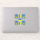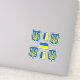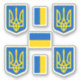 Four Custom-cut vinyl stickers with the coat of arms (trizub) of Ukraine and three stickers with the Ukrainian flag in the centre