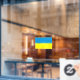 Ukrainian Flag is blue on top and yellow on the bottom. Here it is shown on a rectangular window cling. Slava Ukraini!