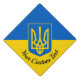 Design with the flag of Ukraine, a blue and yellow flag with the Ukrainian coat of arms (emblem) with a trident in the centre; with a custom text field template for your message