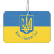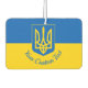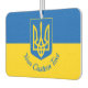 Air freshener with the flag of Ukraine, a blue and yellow flag with the Ukrainian coat of arms (emblem) with a trident in the centre, and a custom text template for your message