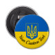 Round bottle opener with the flag of Ukraine, a blue and yellow flag with the Ukrainian coat of arms (emblem) with a trident in the centre, and a custom text template for your message