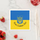 Paper Napkins with the flag of Ukraine, a blue and yellow flag with the Ukrainian coat of arms (emblem) with a trident in the centre, and a custom text template for your message