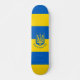 Skateboard with the flag of Ukraine, a blue and yellow flag with the Ukrainian coat of arms (emblem) with a trident in the center, and a custom text template for your message