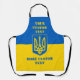 All-over print apron with the flag of the Ukraine with the Ukrainian coat of arms in the centre and two customizable text templates for your message