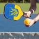 Pickleball Paddle with the flag of Ukraine, a blue and yellow flag with the Ukrainian coat of arms (emblem) with a trident in the centre