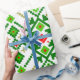 This wrapping paper has a Ukrainian-inspired design of diamond shapes, circles, and crosses. It is fashioned after their folk art.