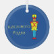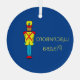 щасливого Різдва Merry Christmas in Ukrainian with nutcracker illustration in yellow, blue and red.