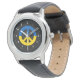 Watch with a peace symbol in the colors of the Ukrainian flag on a black background