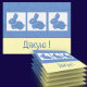 Three cute blue bunnies on a thank you card. Дякую means Thank You in Ukraine. You may click Personalize to change the word on the front, or the words inside, which currently give the English translation of the Ukrainian word for Thank You.