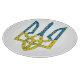 Textured Ukrainian national emblem trident tryzub in Ukrainian flag colours and stroke circle pattern