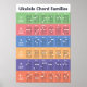 This bright and playful ukulele chord families poster is a great reference with chord diagrams for chords in the following chord families: C, D, F, G, A, B♭. Perfect for both new beginner ukulele players and intermediate ukulele players. This poster features a cute colourful colour scheme (white, dark blue, sage green, peach pink, cornflower blue, tangerine orange, periwinkle purple, and salmon orange) and a nice classic font with customizable colours for every element (text, dots, and fret lines). This is a cute and playful reference poster to learn your ukulele chords and decorate your rooms.
