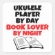 This sticker featuring the quote "Ukulele Player by Day Book Lover by Night" is perfect for any Ukulele Player that loves reading.