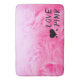Featuring bright pink fuzzy faux fur with 3 black heart decals and "love pink" text that is fully customizable. Change the text, font, size, colour and placement for the best experience.