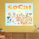 Bright and colourful art offers a spectacular view of Southern California - wacky characters frolic on the beach and desert of SoCal showcasing Los Angeles, Orange County, San Diego, Santa Barbara, Riverside, Palm Springs, El Centro, Anza Borrego and Joshua Tree parks as well as the border cities of Tijuana, Tecate and Mexicali. This charming scene has it all – a surfer hangs ten while a killer whale leaps out of the water, zoo animals greet the tourists, a muscular fellow flexes to impress as a T-Rex roars a challenge and a tank moves into position and much more…