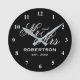 Ultra chic custom Mr and Mrs wall clock for newly weds. Elegant script typography template with family name and date of marriage. Classy presents for just married couple or bride and groom. Chic black and white design home decor. Personalized decor for unique kitchen, office, living room, bedroom etc. Add your own established year and surname. Customizable colours.