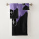 Ultra violet purple flower petals black Monogram Bath Towel Set