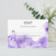 Ultra Violet Watercolor Splashes RSVP. Ultra Violet is Pantone's colour of the year for 2018. The template is easy to personalize if you choose to change the text. The back of the card is a solid mint green. There is a matching wedding invitation. If you would like the design on something not shown, please contact me through my store or email me at shutterbug600@yahoo.com.