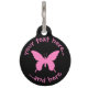 Pink ulysses butterfly. Vector icon with customizable colour. Custom background colour. Two custom text fields on circle. Custom text at back side.