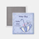 Sweet baby boy magnet for New Dad with adorable blue teddy bear riding in an umbrella, big dots and other special touches. Customize text areas with Your information.