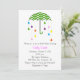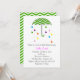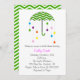 Our umbrella bridal shower invitation features a green chevron printed umbrella with colourful rain drops. A simple yet classy invitation to gather friends and family around the bride to be!