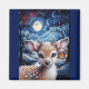 Au premier plan se dresse un faon capricieux, entouré d'une nuit d'hiver magique et d'une pleine lune brillant dans le ciel. Dans l'arrière - plan, un cabine douillet se niche parmi les arbres enneigés.