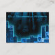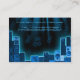 Un modèle de businesscard du DJ de cool avec une conception renversante d'une grande des haut-parleurs rougeoyants flurocent bleus pile et des lumières lasers bleues dans le ciel nocturne a combiné avec les notes noires de musique de contre-jour sur un arrière - plan foncé.