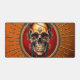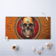 Un crâne dont la présence inspire à la fois émerveillement et fascination. Son crâne est marqué par le temps, portant en son centre un trésor radieux, une pierre précieuse qui pulsère de couleurs chatoyantes et qui renferme le secret de la vie et de la mort. Le crâne s'enfonce comme deux charbons brillants, rouge vif et perçant, comme s'ils pouvaient voir les secrets les plus profonds de l'âme. Une couronne de feuilles figuiers, dont les veines vertes contrastent avec l'os pâle. Cette étreinte vivante symbolise le cycle éternel de la vie et de la mort, tandis qu'une chaîne artisanale l'encercle - un signe de la connexion inséparable entre les mondes.