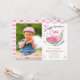 Cette invitation One in a Melon 1st anniversaire est parfaite pour le premier anniversaire d'été de bébé. Il présente de jolies aquarelles sur le thème de la pastèque en rose et vert. Personnalisez avec une photo de votre petit.