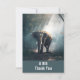 Un carte de remerciements qui dit : "Un GRAND Merci" illustré d'une photo d'un éléphant asiatique aux oreilles arrondies debout dans un défrichement en direction du spectateur avec la lumière du soleil qui coule à travers la canopée des arbres.