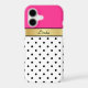 Ce fuchsia rose chaud, pois noir blanc pointillé, nom personnalisé ruban coque d'or est sûr d'apporter un look unique et élégant à votre téléphone. Les couleurs audacieuses et vibrantes de cette teinte unique de fuchsia rose et de pois blancs / noirs associés au ruban doré attirent l'oeil et créent un sentiment d'énergie et d'excitation. Le motif est complexe et détaillé, avec les blocs de couleur couleur rose fuchsia/or chaud et chaque blanc sur des points noirs parfaitement placé pour créer un design magnifique et unique. Le fuchsia rose chaud et les blocs de couleur or en tant que partie de l'arrière - plan ajoute une touche de sophistication et de luxe à la conception. Le design est sûr de se démarquer dans n'importe quelle foule et de faire une déclaration parce que vous pouvez le personnaliser avec un nom ou un texte court. Son motif complexe et détaillé en fera un favori des fashionistas et des tendance. Que vous soyez à la recherche d'un design unique pour votre téléphone ou d'un motif élégant et coloré pour votre appareil, ce fuchsia rose chaud, pois noir blanc, coque iphone de conception ruban doré de nom personnalisé est sûr d'impressionner.
