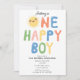 Un beau dessin d'invitation de soleil dessiné à la main. Une mignonne invitation à la fête du premier anniversaire "One happy boy". Un beau thème d'invitation d'anniversaire de soleil d'été qui peut être customisé à vos détails.