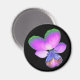 Cet aimant .présente une photo d'une fleur sauvage de Pansy. La photo a été colorée artificiellement, ce qui donne un sansy avec des pétales violets rosâtres brillants avec des pétales à pointes vertes et un centre bleu profond. L'arrière - plan est noir pour faire ressortir la fleur.