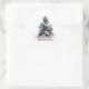 Autocollant rond avec l'image d'un pin solitaire recouvert de neige et "Joyeux Noël" imprimé en rouge en dessous. Voir confettis assortis, étiquette de faveur, sacs cadeaux, étiquette et papier d'emballage. Voir l'ensemble de la collection Holiday Sticker dans les INVITATIONS | Section Stickers & Étiquettes.