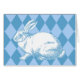Illustration vintage d'un lapin recoloré en bleu sur blanc.