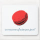 A vibrant and striking graphic image of a red strawberry macaroon with text in French. A cheerful accent for your desk!