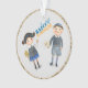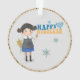 Ce mignon ornement présente un garçon et une fille juive de caractère mignon fantaisiste habillé de vêtements bleus d'inspiration juive. Il s'agit d'un design original que vous ne trouverez nulle part ailleurs. Heureux Hanoukka !