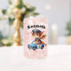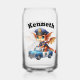 Un charmant petit dragon habillé comme un policier est assis au-dessus d'une voiture de police bleue vintage, montrant son esprit ludique et son charme fantaisiste sous un ciel lumineux.