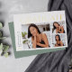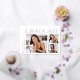 Une carte élégante et moderne de faire-part de graduation avec trois photos (une carré et deux horizontales), avec "gradué" en haut en papier doré. Personnalisez avec votre année de diplôme, votre nom et votre école le long du côté gauche. Ajoutez un message personnel à l'arrière, ainsi qu'une photo supplémentaire.