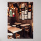 A l'intérieur d'un petit café, table et chaises et décoration murale. C'est un art généré par l'IA.