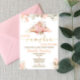 C'est un invitation baby shower à thème citrouille rose, marron et or. Un Petit Citrouille est en route ! C'est un thème rustique parfait pour un baby shower lancé en automne. Décoré de feuilles colorés.