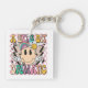 Un peu Dramatique Dramatique Drôle Super dire Porte - clé de typographie présente le texte "Un peu Dramatique" dans la typographie moderne sur un arrière - plan de damier rose avec des fleurs super, des boulons éclairants et un visage souriant. Conçu par Evco Studio www.zazzle.com/store/evcostudio