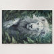 Une peinture à l'encre d'un majestueux lion blanc comme puzzle, art partiel de A.I.