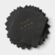 Une belle conception minimaliste de typographie à base de mariage avec "cheers to love" et votre date de mariage dans un élégant combo de script manuscrit et de lettrage serif classique, le tout en feuille d'or luxe sur une serviette noire chic.