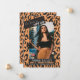 Notre Faire-part Wild One Graduation est un faire-part plat vertical au design unique. Il comporte une impression de guépard sur l'avant et l'arrière du faire-part avec une photo de votre diplômé sur l'avant. L'expression "ça a été sauvage" est affichée dans le coin supérieur de l'invitation.