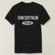 Stoer zwart shirt met de tekst: Uncertain Texas. In witte en zwarte letters. Naast Texas staan 2 sterren.