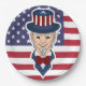 Paper plate with an illustration of Uncle Sam with the American flag as a background, 4th of July patriotic design by Maxi Harmony / Radka Kavalcova