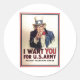 Uncle Sam I Want You For US Army Classic Round Sticker