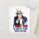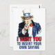 The "I want you..." postcards are great because they allow you to finish the sentance that Uncle Sam is famous for. Unfortunately, the government is always telling us what we "should" be doing and no one says it better than Uncle Sam. He's an iconic figure that US citizens can identify quickly. They are a lot of fun! The postcards turned out to be be classics. Colors and fonts look fantastic. I love the gloss finish because it really highlights Uncle Sam's stern look. I'm really enjoying sending these out to friends and colleagues. Nice job!