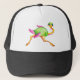 A very uncommon ostrich running flaunting his rainbow-coloured feathers.