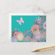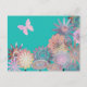 Bright turquoise design, with a pretty flower pattern and pink butterfly. Customizable and unique this floral design is colourful and modern.